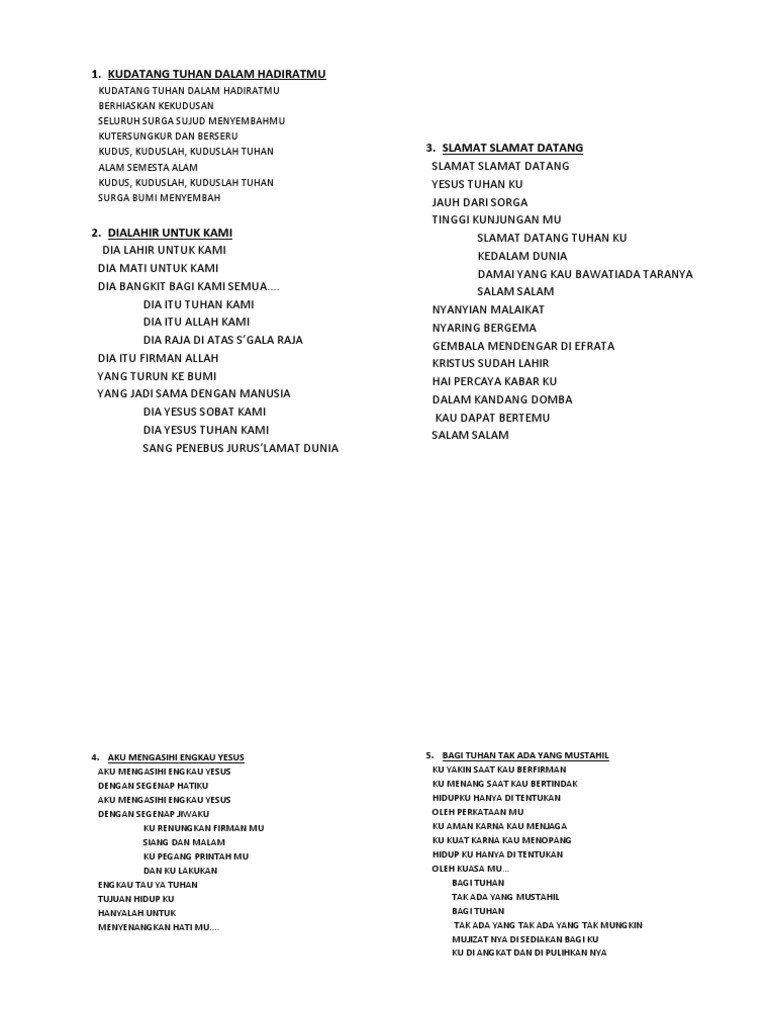 Tidak Ada Komentar pada 97 Kumpulan Lirik Lagu Rohani Kristen Terbaru Terindah 2021 Dipublikasi di Lagu Rohani Oleh admin Dipublikasi pada Mei 14 2021 Mei 14 2021 Tag. Lagu ini dibawakan oleh JPCC Worship sebagai ungkapan penyerahan hidup pada Tuhan. Jamahlah kurindu hadiratMu Reff Kusembah kudus Kudus kuduslah Tuhan Dan kusanjung kau mulia Mulia bagiMu Tuhan.